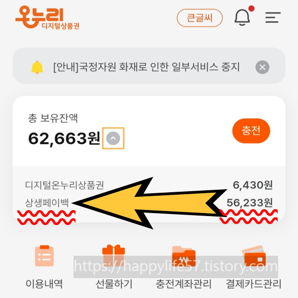 이제 사용만 가맹점에서 사용만하면 됩니다. 상생페이백으로 받은 금액이 먼저 사용되고 이후 내가 충전한 금액이 사용됩니다.