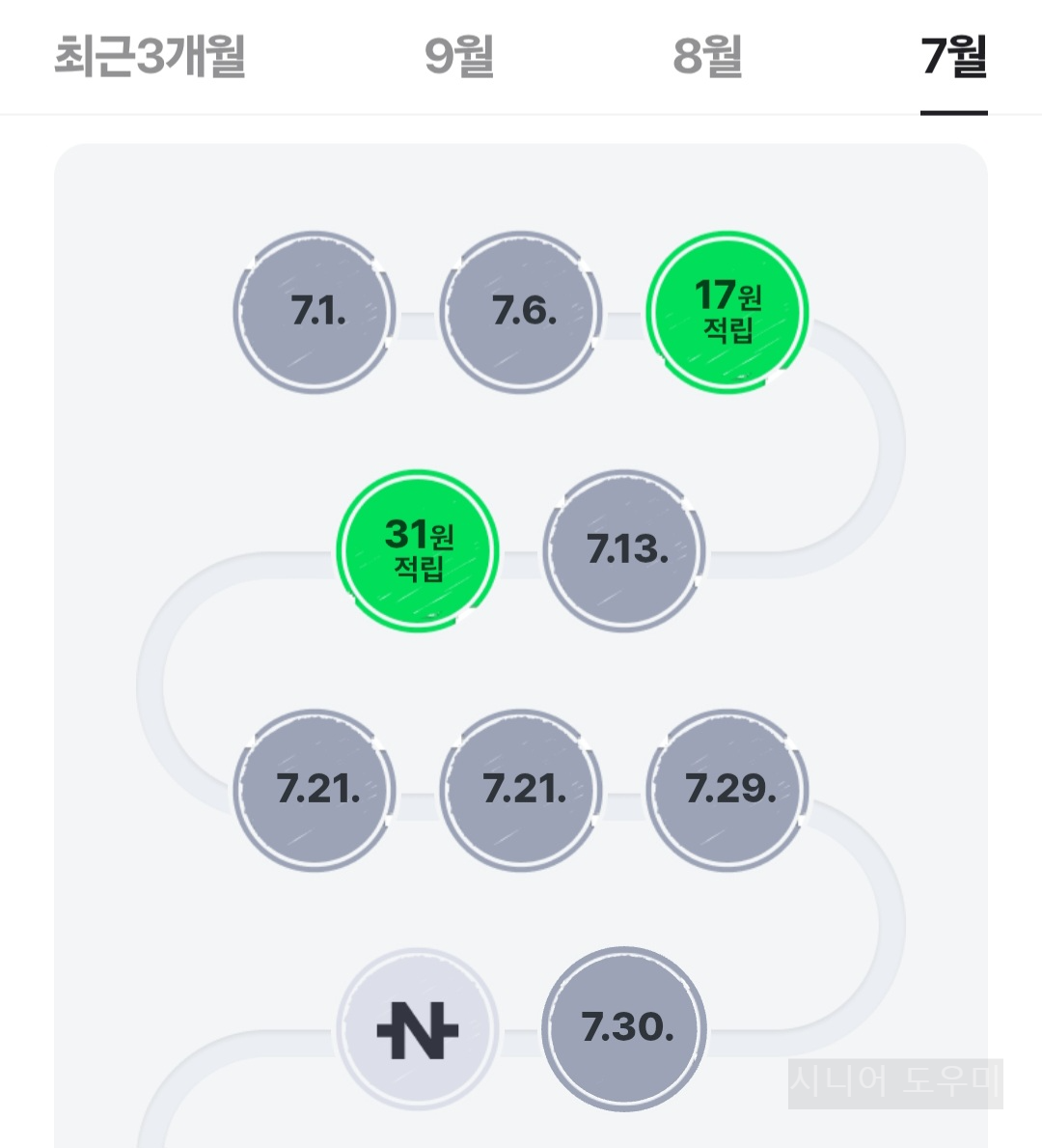 적립을 추가로 받을 수 있습니다. 대부분 십 원 단위로 작지만 모이면 커피 한잔정도는 쉽게 모입니다. 네이버페이 앱을 통해 결제하면 더 많은 기본적립과 결제 횟수에 따른 적립을 받을 수 있습니다.