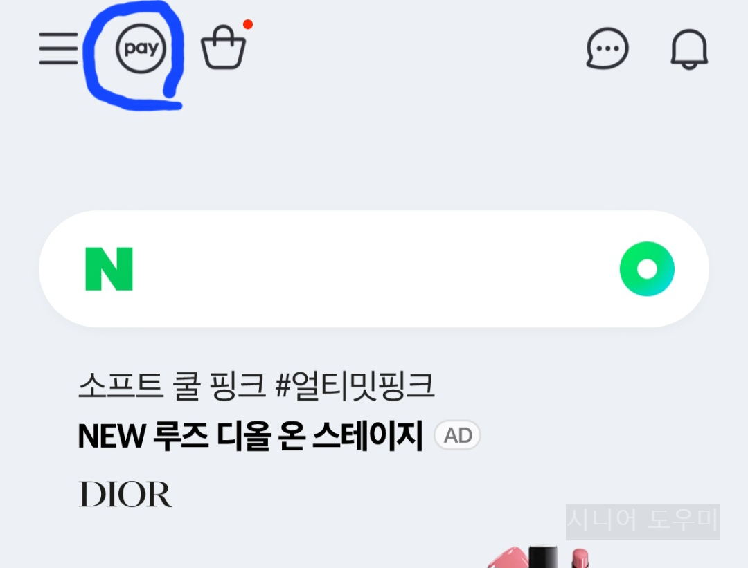 네이버 앱 메인 왼쪽 상단의 pay를 선택해 주세요.